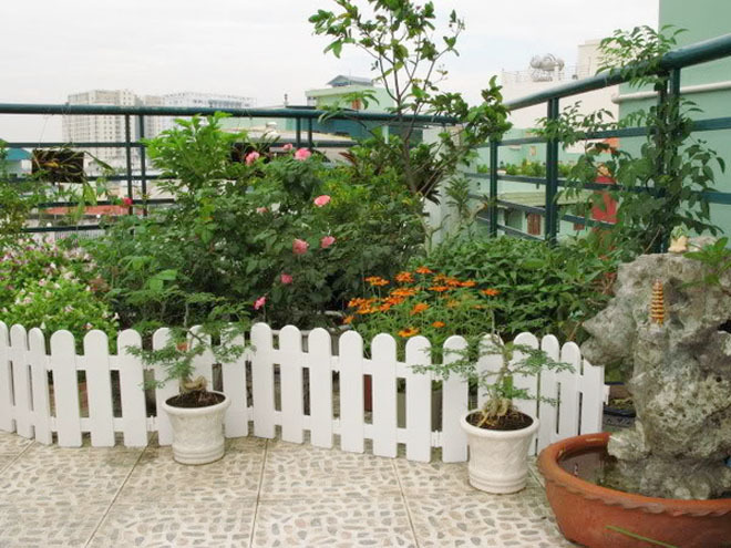 Sân thượng được thiết kế như một công viên thu nhỏ với nhiều loại cây trồng được chủ nhà chăm chút từng tí một.